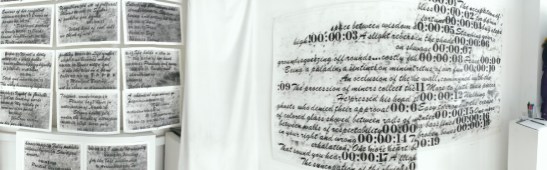 Installation view of ASC/AiRIV: Rodney Ewing, 2014. All works are rubbed graphite on paper.
